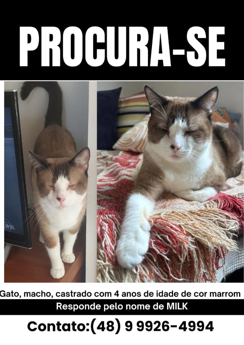 Ajude o MILK a voltar para sua família... ele era muito amado por sua familia e que até hoje não consgeuimos superar sua ausência.. se alguém tiver notícias dele, por favor entrem em contato, eu preciso muito dele. Obrigada!!